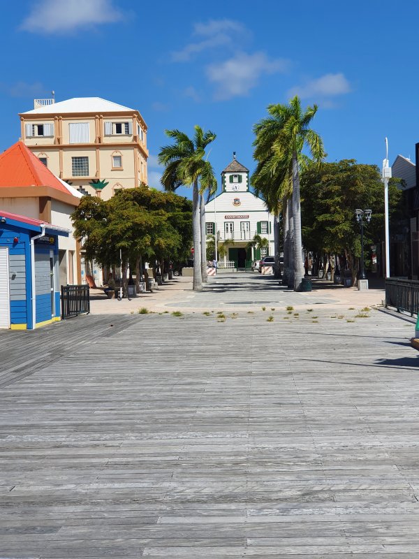 - Courthouse (budova soudu) se nachází naproti molu, kde přistávají trajekty vozící turisty k výletním lodím. Vypadá jako kostel, ale místo kříže má ananas, jako symbol hojnosti. Je to nejstarší zachovaná budova na ostrově z roku 1793 a dlouho sloužila jako administrativní centrum celé holandské části.