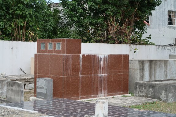- Hřbitov se nalézá až na konci Front Street. Není ničím zvlášť významný, ale mě zaujal stylem hrobů, které mi připomínají kachlová kamna. Jeden hrob je dokonce obložen hodně podobnými obkladačkami, jako kachláky v našem domě v Česku.